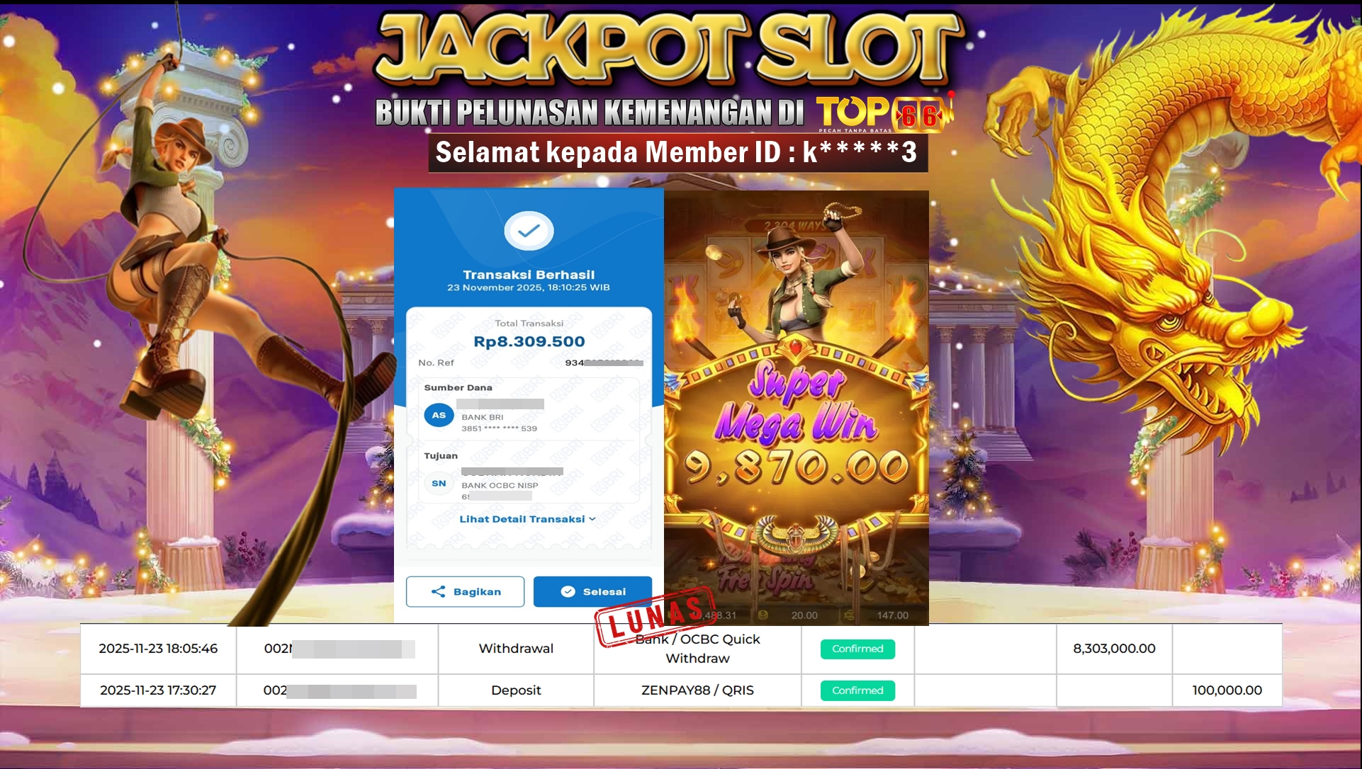 TOP66 – BUKTI KEMENANGAN SLOT RAIDER JANE CRYPT OF FORTUNE Rp 8.303.000,- LUNAS Selamat kepada User id : k*3, Telah…
