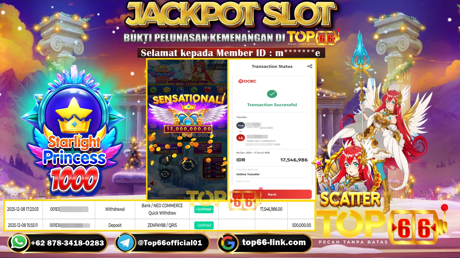 TOP66 – BUKTI KEMENANGAN SLOT STARLIGHT PRINCESS 1000 Rp 17,546,986,- LUNAS Selamat kepada Member ID : m*******e, Telah berhasil mendapatkan…