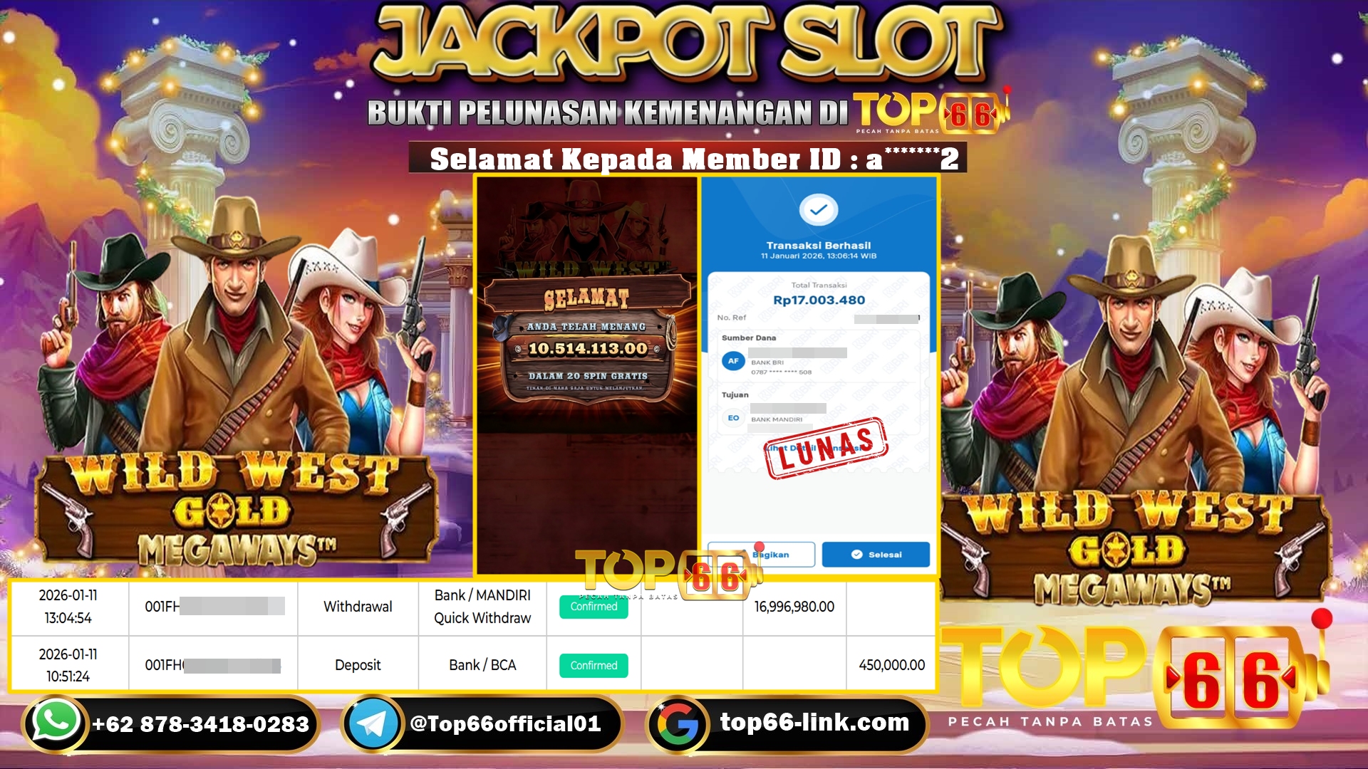 TOP66 – BUKTI KEMENANGAN SLOT WILD WEST GOLD MEGAWAYS Rp 16,996,980,- LUNAS Selamat Kepada Member ID : a*******2, Telah berhasil…